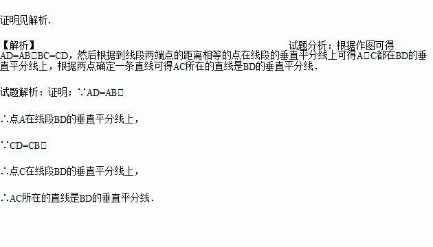 ③连接BD,与AC交于点E,连接AD,CD.求证:AC所在的直线是BD的垂直平分线.