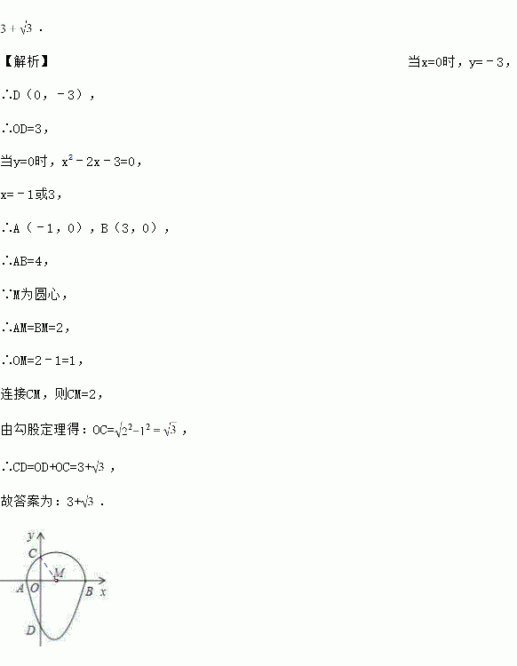 如图,抛物线y=x2﹣2x﹣3与x轴交于点A、B,与y轴交于点D,以AB为直径的半圆交y轴于点C,则线段CD的长为______.
