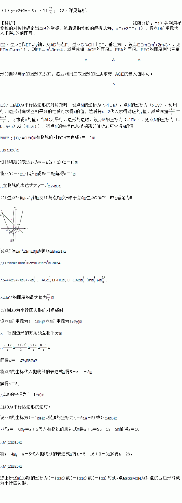 (2)若点E是直线下方抛物线上的一个动点,求出△ACE面积的最大值;