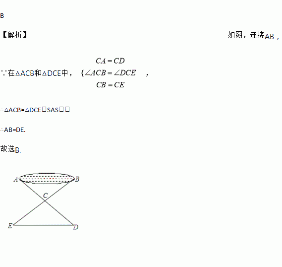 如图,有一池塘,要测池塘两端A,B的距离,可先在平地上取一个直接到达A和B的点C,连接AC并延长到D,使CD=CA,连接BC并延长到E,使CE=CB,连接DE,那么量出DE的长,就是A、B的距离.我们可以证明出△ABC≌△DEC,进而得出AB=DE,那么判定△ABC和△DEC全等的依据是( )