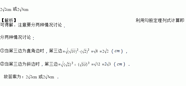 直角三角形的两条边分别为 、 ,则这个直角三角形的的第三边长是_____