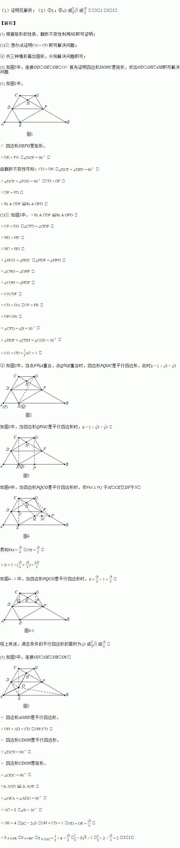 的边上取一点P,在矩形DEFG的边上取一点Q,若以P,Q,C,G为顶点的四边形是平行四边形,求出所有满足条件的平行四边形的面积.![]()