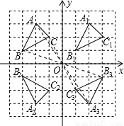 (4)在△A1B1C1,△A2B2C2,△A3B3C3中,△______与△______成轴对称,对称轴是______;△______与△______成中心对称,对称中心的坐标是______.
