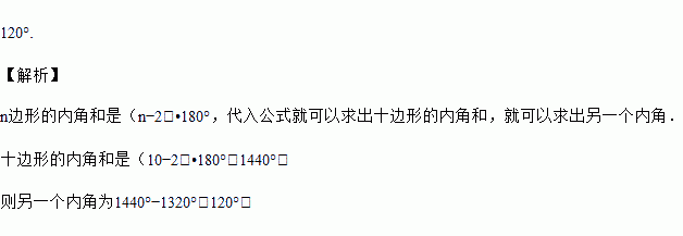 已知在一个十边形中,其中九个内角的和是1320,求这个十边形另一个内角的度数.