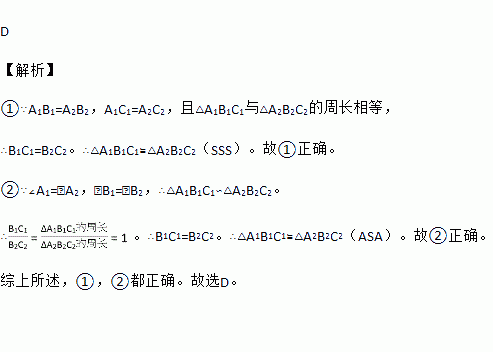 已知△A1B1C1,△A2B2C2的周长相等,现有两个判断: