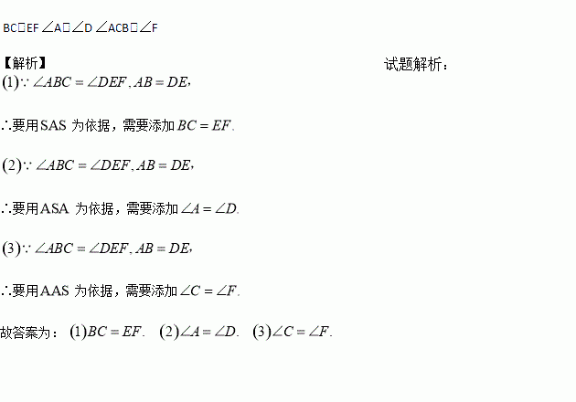 已知:如图,∠ABC=∠DEF,AB=DE,要说明△ABC≌△DEF,