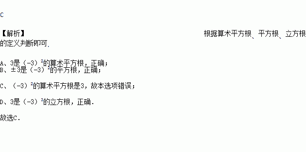 的算术平方根 D. -3是