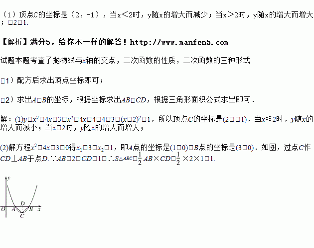 (1)用配方法求其图象的顶点C的坐标,并描述该函数的函数值随自变量的增减而变化的情况;