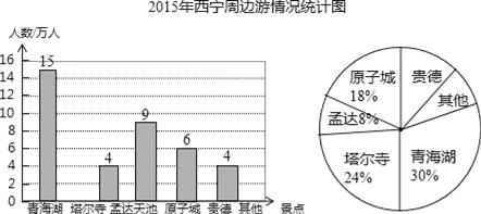 (1)2015年国庆期间,西宁周边景区共接待游客 万人,扇形统计图中“青海湖”所对应的圆心角的度数是 ,并补全条形统计图;