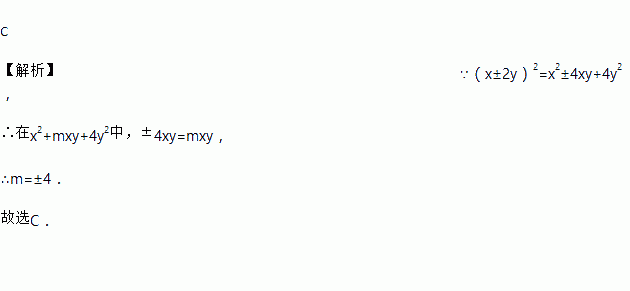 若x2+mxy+4y2是完全平方式,则常数m的值为( )