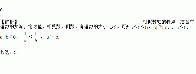有理数a,b在数轴上的位置如图所示,则下列关系式:①|a|>|b|; ②a-b>0;③a+b>0;④ >;⑤-a>-b,其中正确的有( )