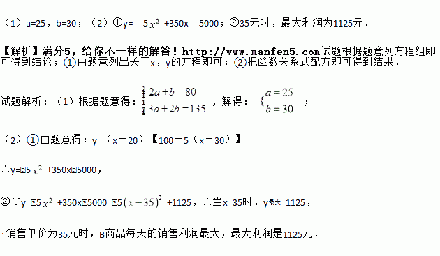(2)B商品每件的成本是20元,根据市场调查:若按(1)中求出的单价销售,该商场每天销售B商品100件;若销售单价每上涨1元,B商品每天的销售量就减少5件.