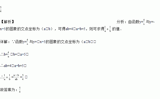 已知函数y=与y=﹣x+5的图象的交点坐标为(a,b),则的值为_____.