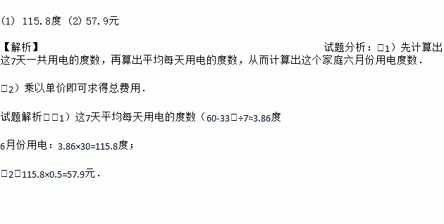 (2)若按每度0.5元计算,这个家庭6月份电费要缴多少元?
