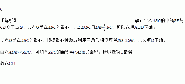 如图,△ABC的中线BE与CD交于点G,连接DE,下列结论不正确的是( )