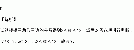 在△ABC中,AB=5,AC=8,则BC长不可能是( )