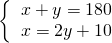 如图,设∠1=x°,∠2=y°,且∠1的度数比∠2的度数的2倍多10°,则可列方程组为________.