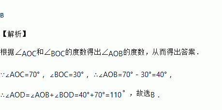 如图所示,已知∠AOC=∠BOD=70°,∠BOC=30°,则∠AOD的度数为( )