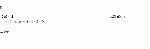 若a=3,a﹣b=2,则a2﹣ab的值为( )