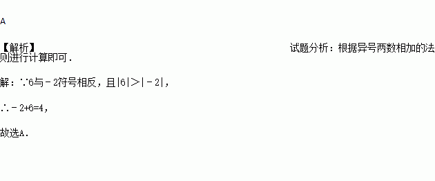 计算﹣2+6等于( )