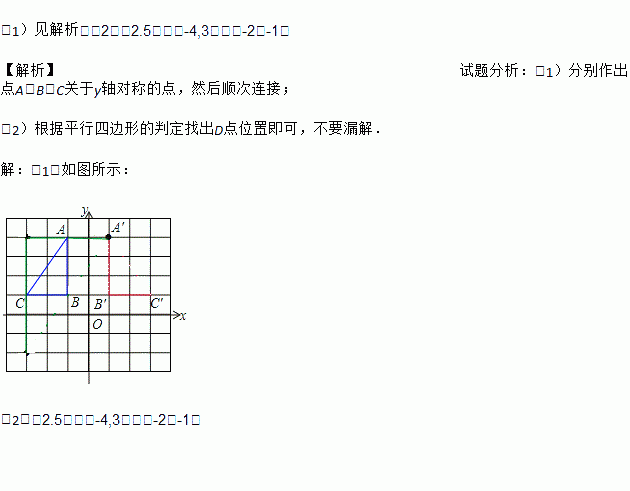 (1)作出△ABC关于y轴对称的△A′B′C′;