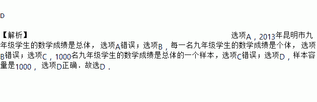 A. 2013年昆明市九年级学生是总体 B. 每一名九年级学生是个体