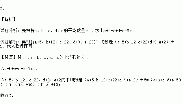,则a+5,b+12,c+22,d+9,e+2的平均数是( )