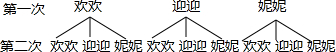 北京08奥运会吉祥物是“贝贝、晶晶、欢欢、迎迎、妮妮”,现将三张分别印有“欢欢、迎迎、妮妮”这三个吉祥物图案的卡片(卡片的形状大小一样,质地相同)放入盒子.