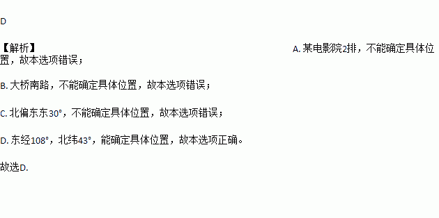 A. 某电影院2排 B. 大桥南路 C. 北偏东30° D. 东经108°,北纬43°