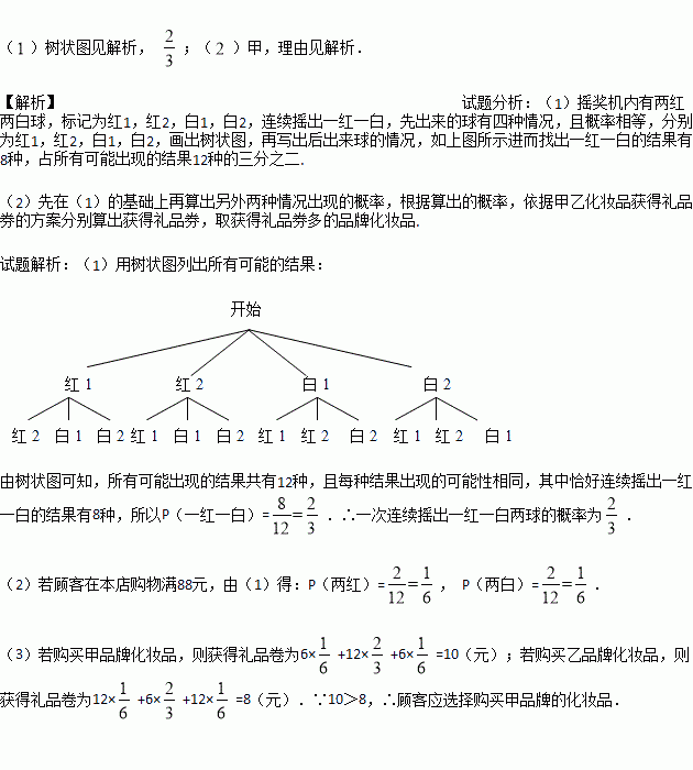 某化妆品专卖店,为了吸引顾客,准备在“母亲节”当天举办了甲、乙两种品牌化妆品有奖酬宾活动,凡购物满