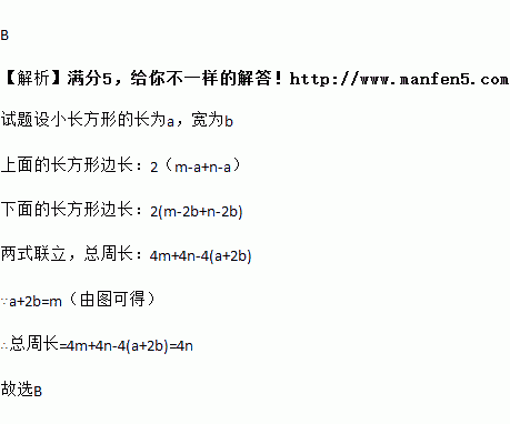 把四张形状大小完全相同的小长方形卡片(如图①)不重叠地放在一个底面为长方形(长为m cm,宽为n cm)的盒子底部(如图②),盒子底面未被卡片覆盖的部分用阴影表示.则图②中两块阴影部分的周长和是( )