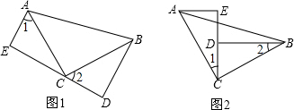 (2)图2中,若AE=2,BD=4,计算DE的长.