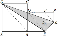 分析:连BD、GE、FK,则DB∥GE∥FK,在梯形DBEG和梯形GEKF中,根据三角形的等积变换可得,S△GED=S△GEB,S△GEK=S△GEF,则可得S阴影=S正方形BEFG,再根据正方形BEFG的边长为b,解答出即可.运用平行线间的距离处处相等,同底等高来求面积,想起会更简便.