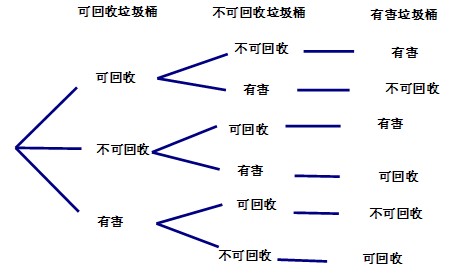 湖州实行垃圾分类处理,垃圾桶有绿,黄,红三种颜色,绿色是投放可回收砬圾,黄色投放不可回收垃圾,红色是有毒垃圾,在漆黑晚上,小明下楼要把家中的三袋垃圾分别投到三个垃圾筒中,其中一袋是可回收的垃圾,一袋是不可回收的垃圾,一袋是有害垃圾,小明随手投放,三袋都投正确的概率是多少?画出树状图或列表分析,并求出投放正确的概率。