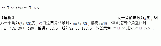 若两个角的两边分别平行,而一个角比另一个角的倍少,则两个角的度数分别是__________.
