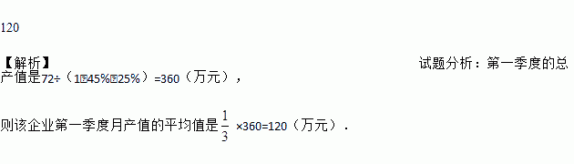 (2017上海第14题)某企业今年第一季度各月份产值占这个季度总产值的百分比如图所示,又知二月份产值是72万元,那么该企业第一季度月产值的平均数是__万元.