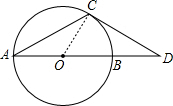 19.分析 连接OC,即可求得∠D=30°,从而求得OD的长,根据BD=OD-OB即可求解.