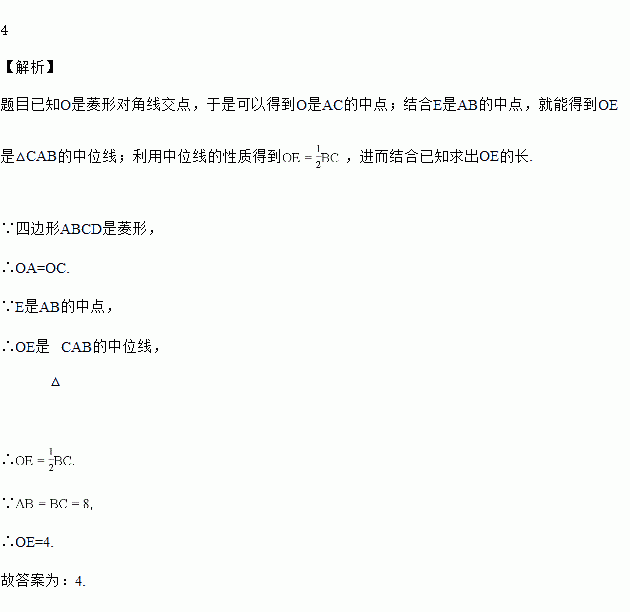 如图,在菱形中,对角线,相交于点,,是的中点,则的长等于________.