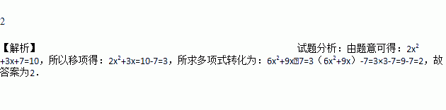若多项式2x2+3x+7的值为10,则多项式6x2+9x﹣7的值为_____.