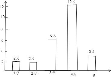 £¨3£©ÓÉͼ£¨2£©¿ÉÖª²ÙÐе÷ÖΪ5·ÖµÄÄÐÉúÊÇ3ÈË£¬ËùÒÔÓÐ1ÃûÅ®Éú²ÙÐе÷ÖΪ5·Ö£®