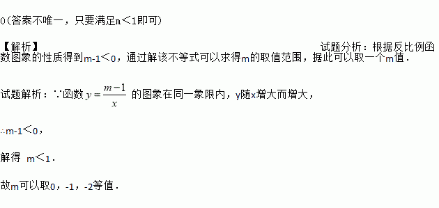 若函数y=的图象在同一象限内,y随x增大而增大,则m的值可以是_____.(写出一个即可)