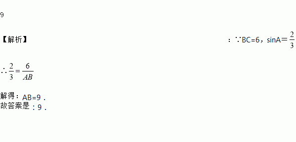 在△ABC中,∠C=90°,BC=6,sinA=,则AB边的长是________.