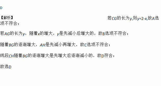 °.设BG=x,图中某条线段长为y,y与x满足的函数关系的图象大致如图2所示,则这条线段可能是图中的( )