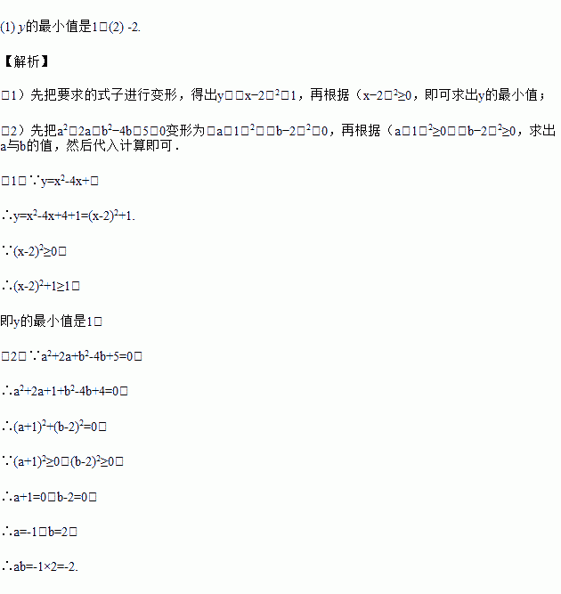(2)已知:a2+2a+b2-4b+5=0,求ab的值.