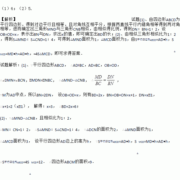 如图,在平行四边形ABCD中,对角线AC、BD交于点O.M为AD中点,连接CM交BD于点N,且ON=1.