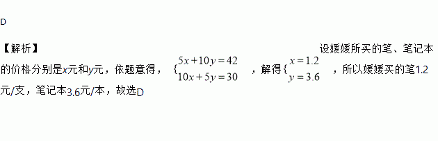 根据以下对话,可以求得小红所买的笔和笔记本的价格分别是( )