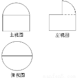 某一空间图形的三视图如右图所示, 其中主视图:半径为1的半圆以及高为1的矩形; 左视图:半径为1的圆以及高为1的矩形; 俯视图:半径为1的圆. 求此图形的体积.