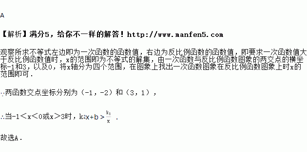 函数与(、为非零常数)的图象如图所示,由图象可知关于的不等式的解集是( )