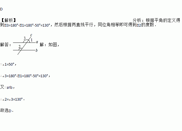 A. 40º B. 50º C. 120º D. 130º