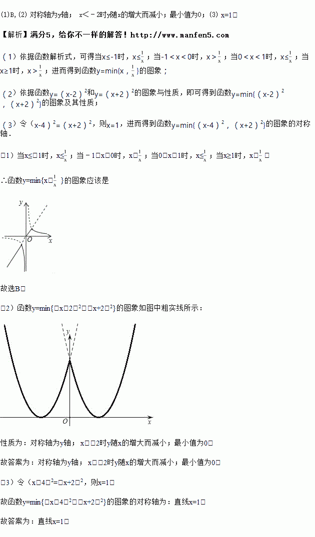 (3)函数y=min{(x﹣4)2,(x+2)2}的图象关于 对称.